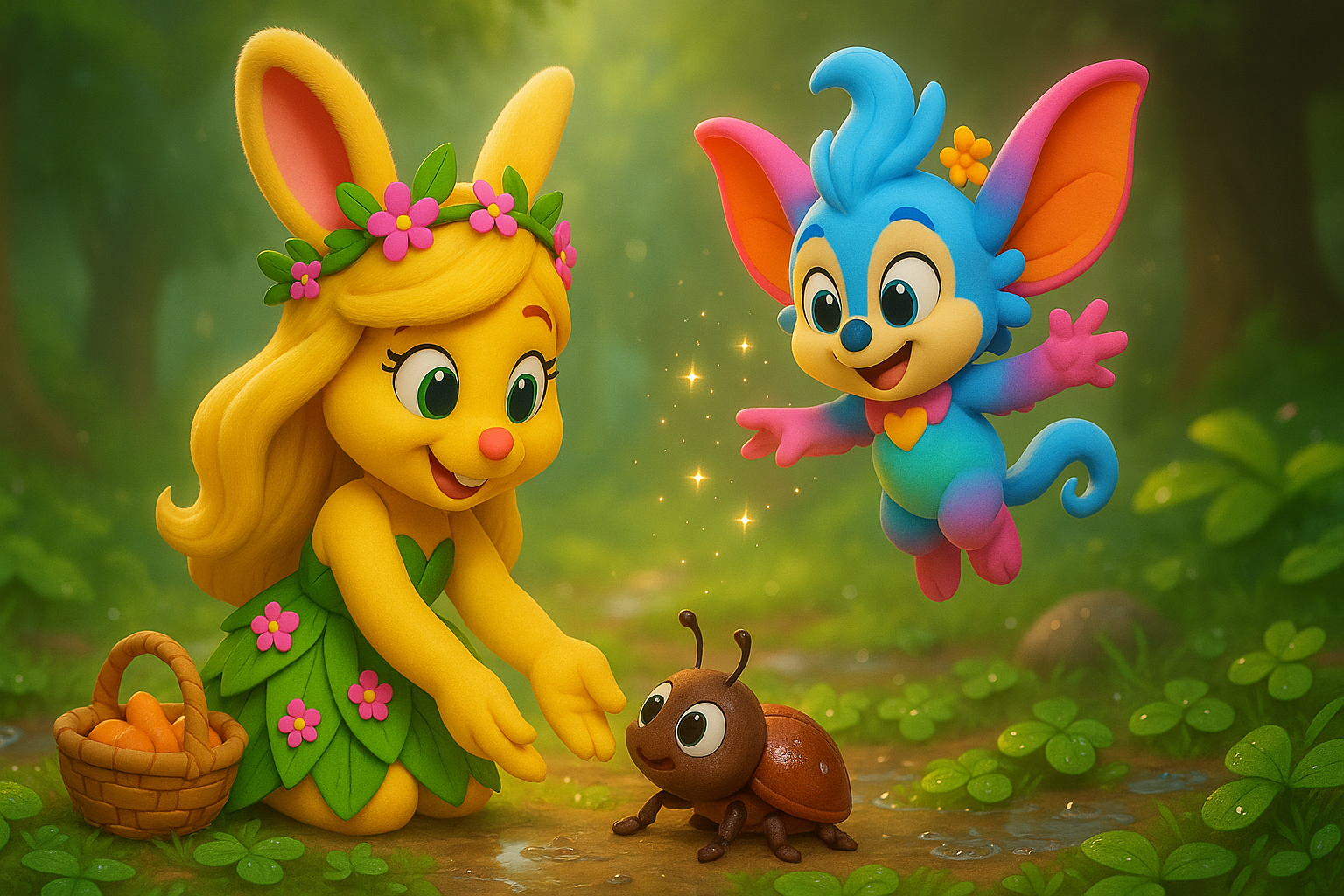 They pressed small seeds into the soil. A robin brought a string of blue petals. Two ants dragged tiny tools. A shy toad carried water in a shell. Leafy thanked each helper by name.