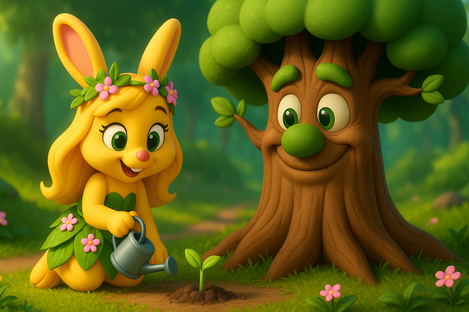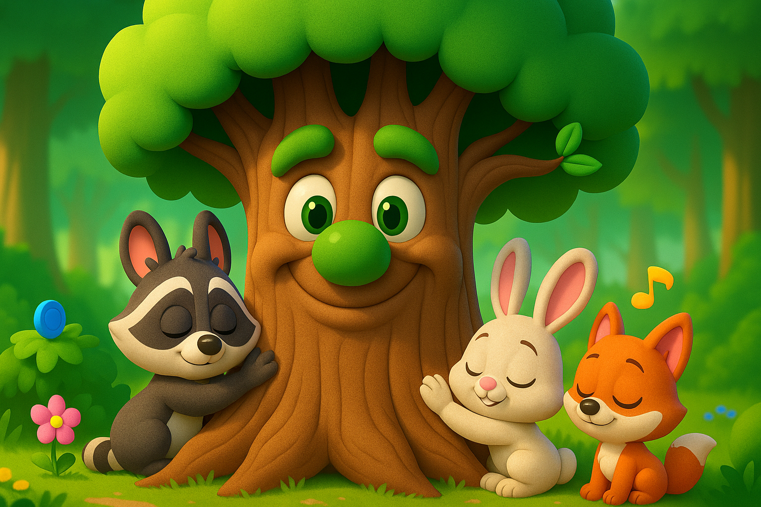 Morning light slid through the Enchanted Forest. At the center stood Alderwise, the old tree with kind eyes. He listened to birds, breeze, and tiny footsteps, quiet and still.