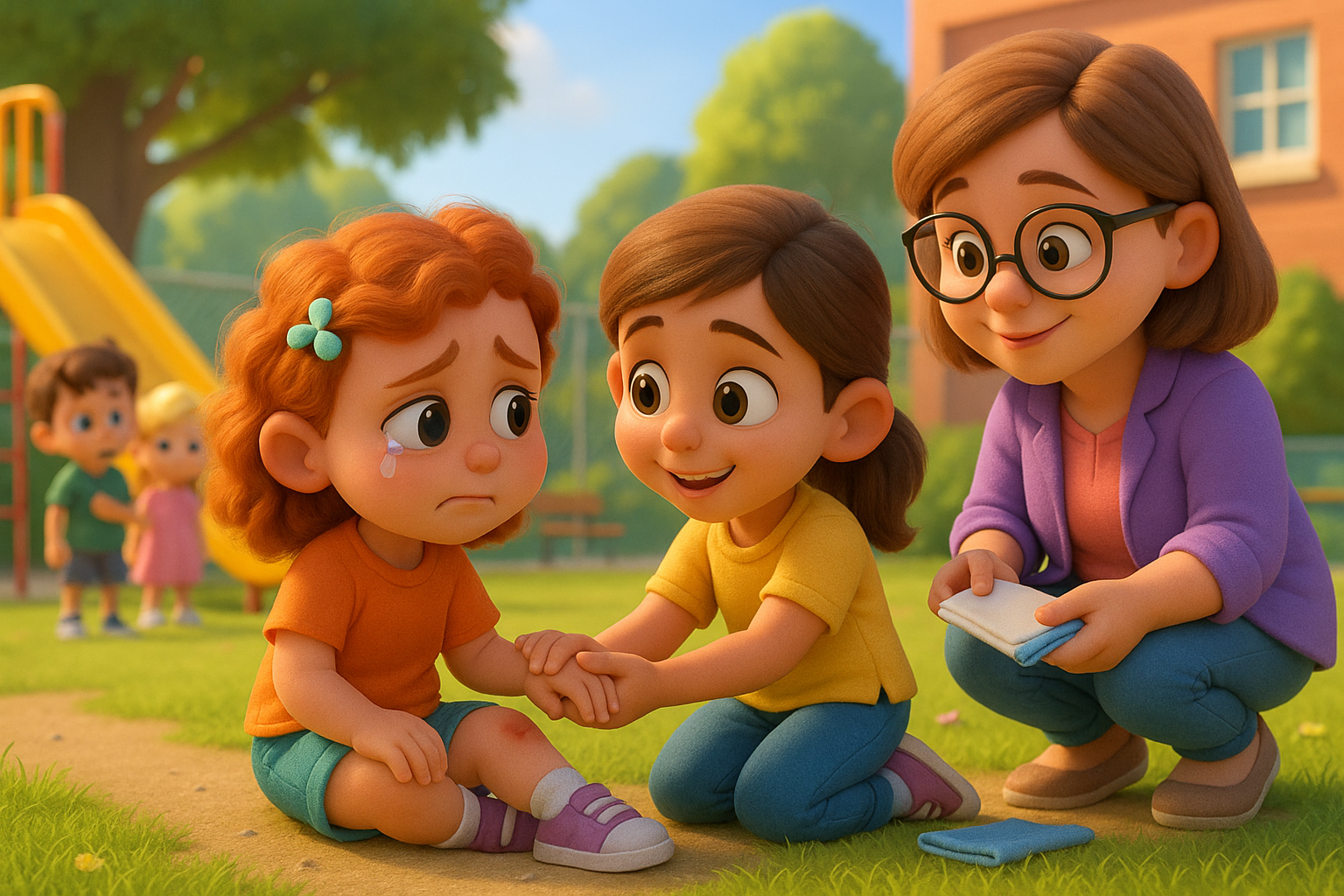 Everyone gathered around and stared. But Emma knelt beside her. “It’s okay,” she said softly, taking Zoe’s hand. “I fell last week. It hurts. But it gets better.”