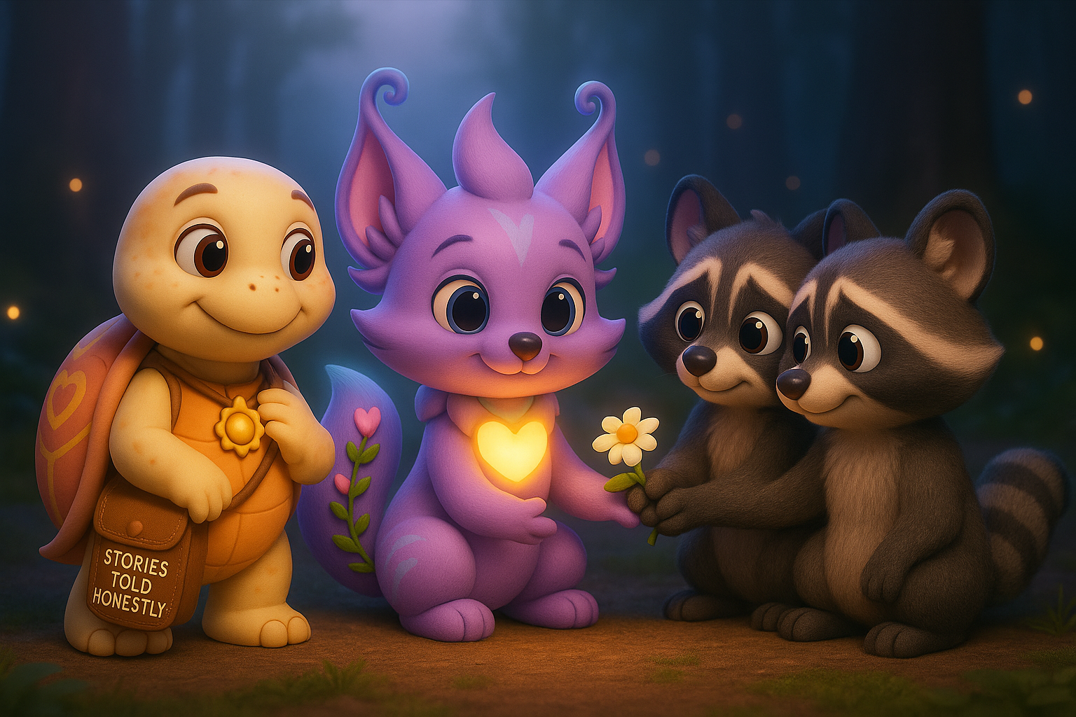 Lumi the tortoise appeared, her shell glowing as if the moon had chosen to walk beside her.
