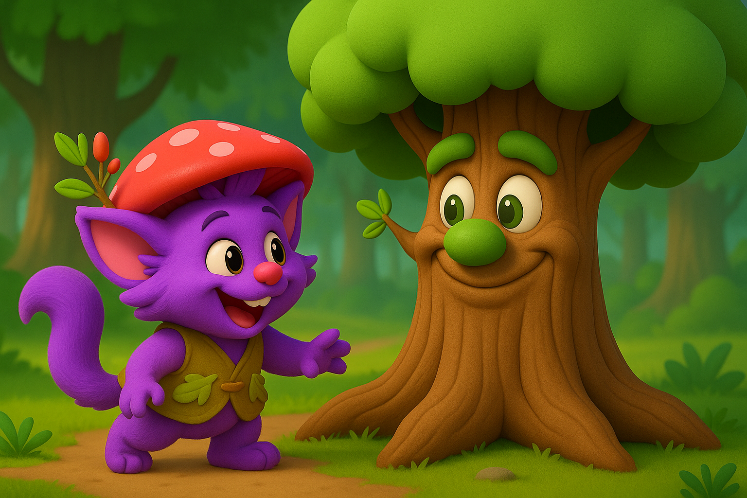Leaves rustled above. The forest felt glad. Snoggle’s patient joy filled the soft night. Alderwise watched kindly as Snoggle smiled, calm and bright inside.